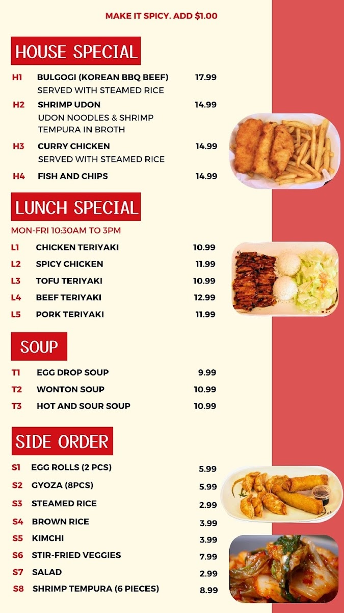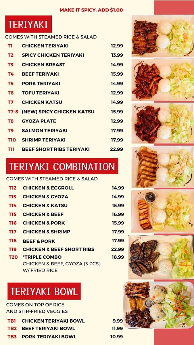 The menu also boasts also features like the Spicy Teriyaki ($15.99), offering a kick for those who crave a bit of heat, or the Gyoza Plate ($13.99), filled with savory goodness that pairs deliciously with their special dipping sauce. Each dish arrives in generous portions, ensuring that you leave fully satisfied.